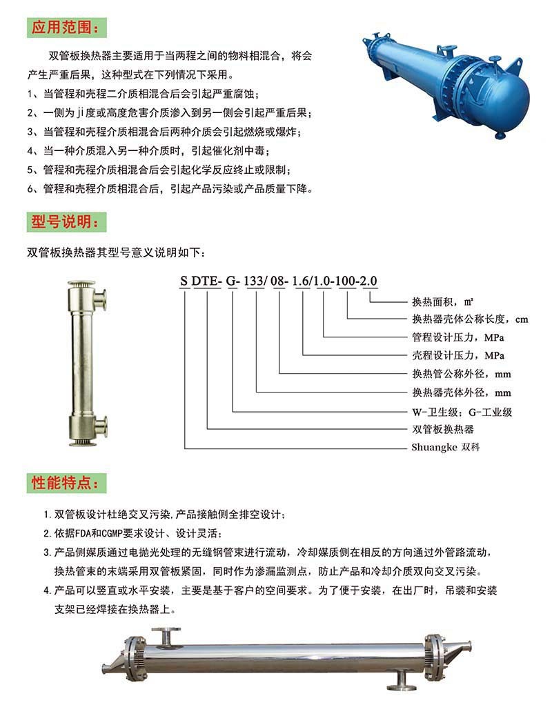 無菌級雙管板換熱器產(chǎn)品特點(diǎn):